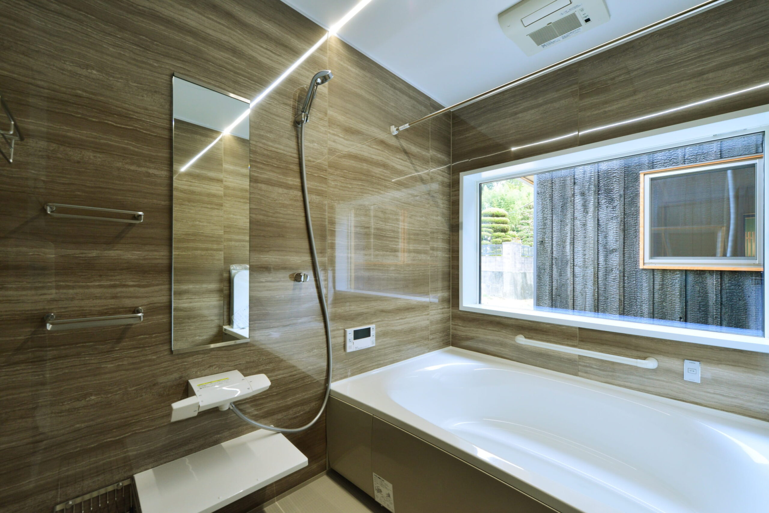 屋根は瓦、外壁は本焼板とシラス壁でメンテナンスフリーです。中には桧をふんだんに使用しています。