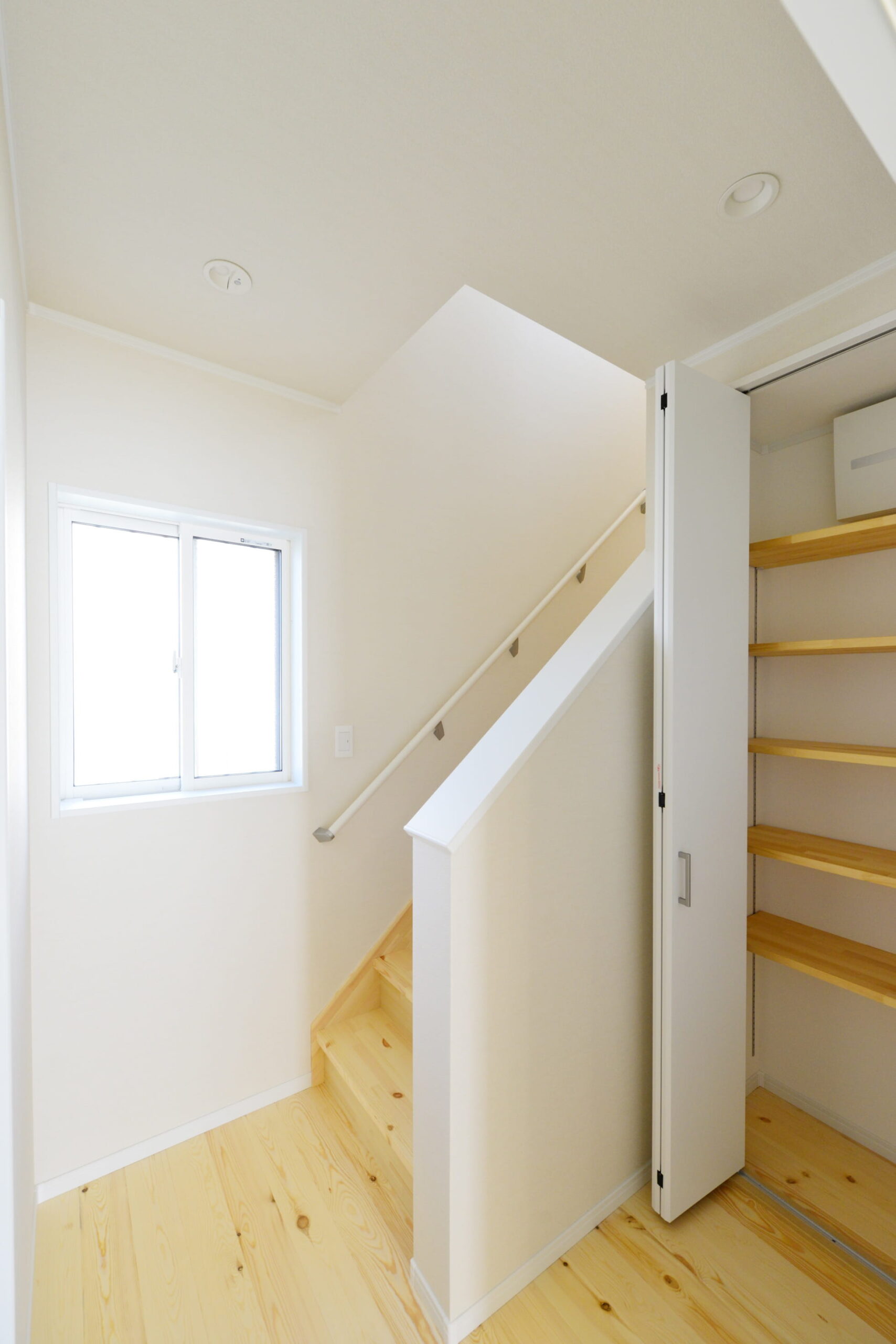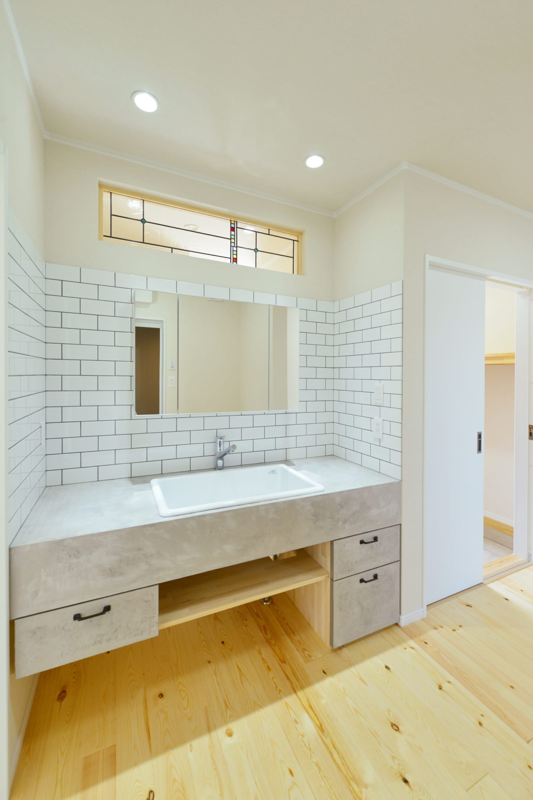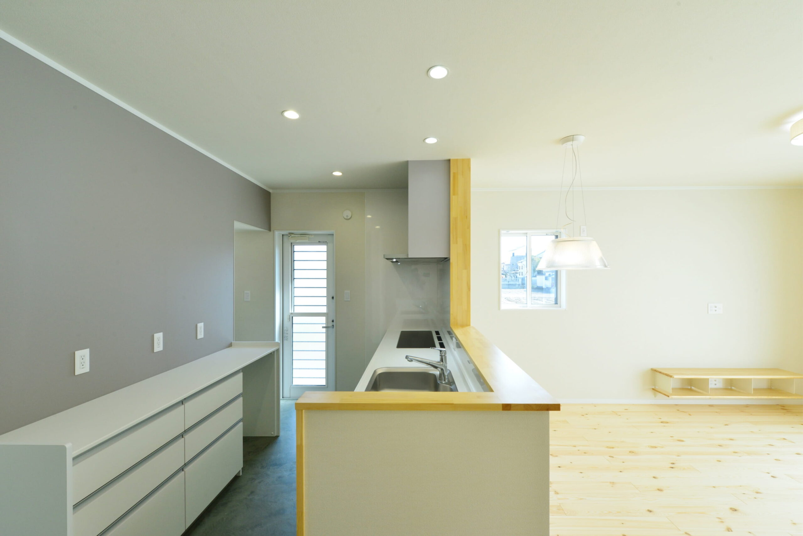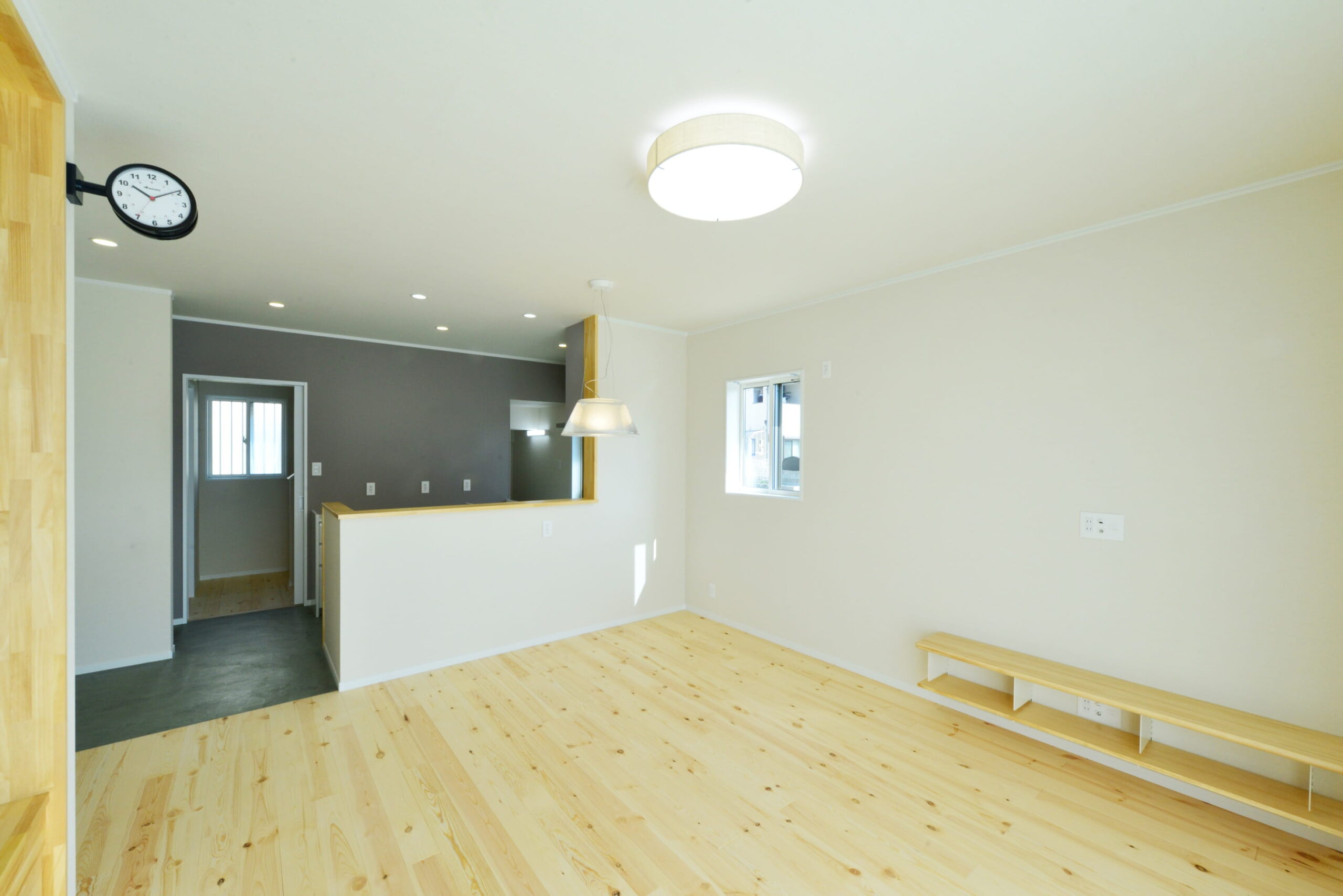 無垢のフローリングも斜めに貼っていたり、シンプルに見えて細かい部分にこだわりが詰まった家になっています。