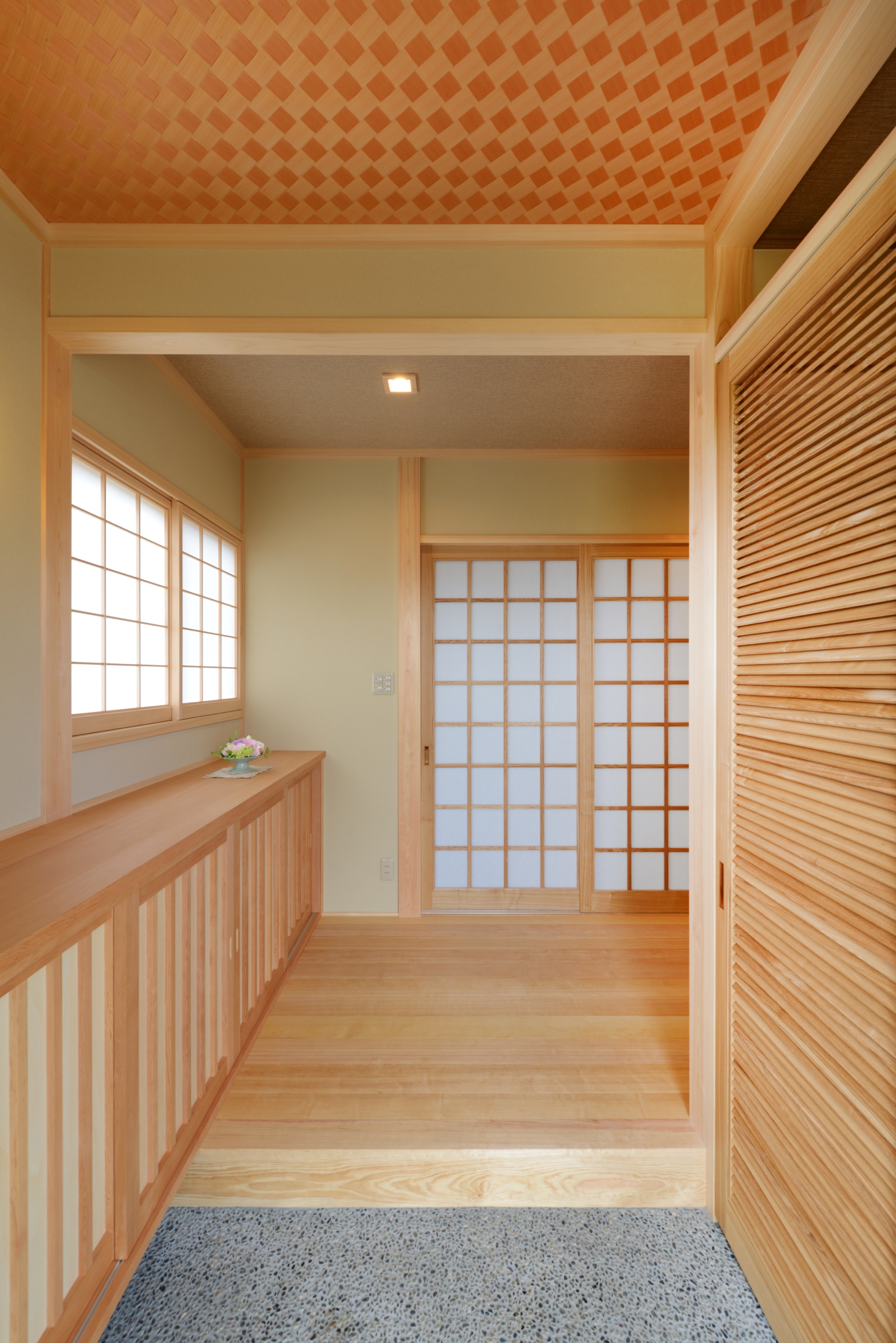 玄関に入るといぐさと木の香りに包まれます。