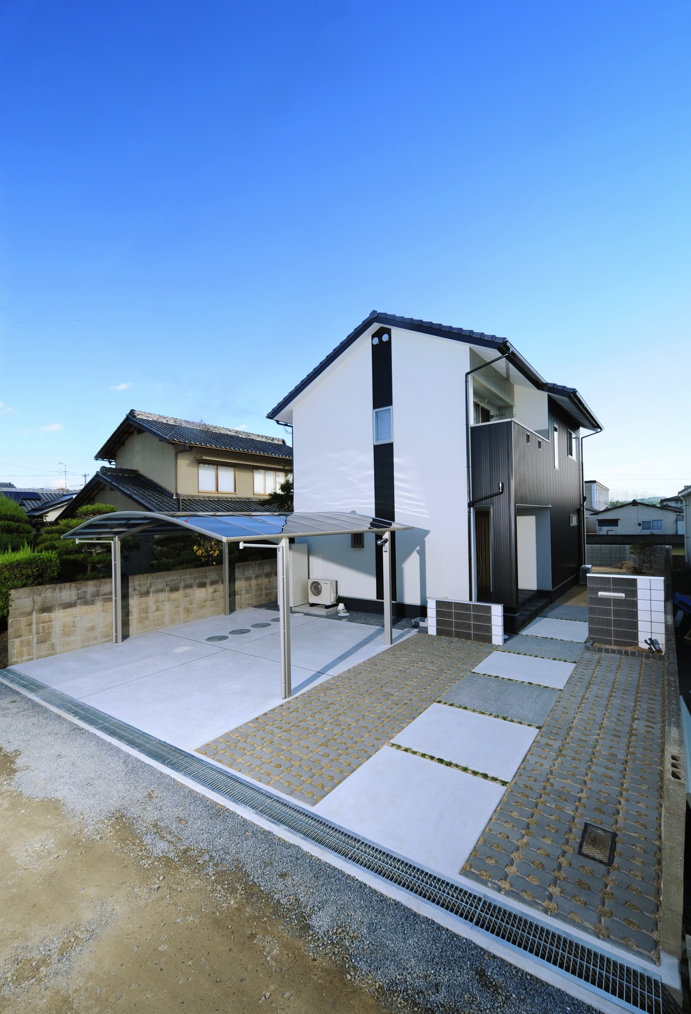 白と黒を基調とした外観のH様邸。