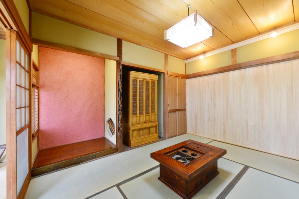 和室には中霧島のベンガラ色を塗り、パッと目を引くようになりました。